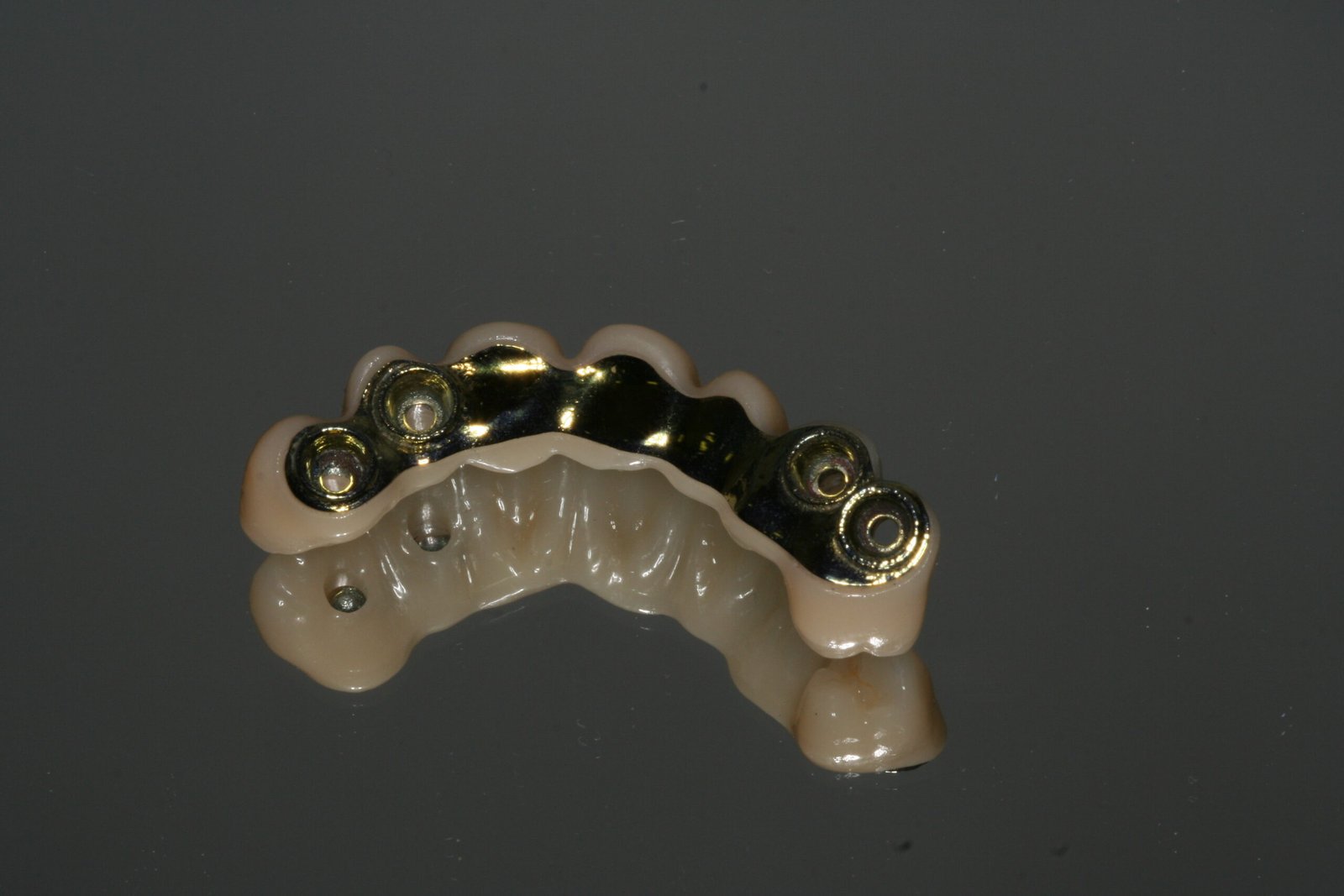 La prótesis fija sobre implantes consiste en colocar implantes dentales en el hueso maxilar o mandibular que actúan como raíces artificiales. Sobre ellos se fija de manera permanente una prótesis dental diseñada en laboratorio. El número de implantes dependerá de cada caso: desde un implante unitario hasta rehabilitaciones completas con arcadas completas de dientes fijos.